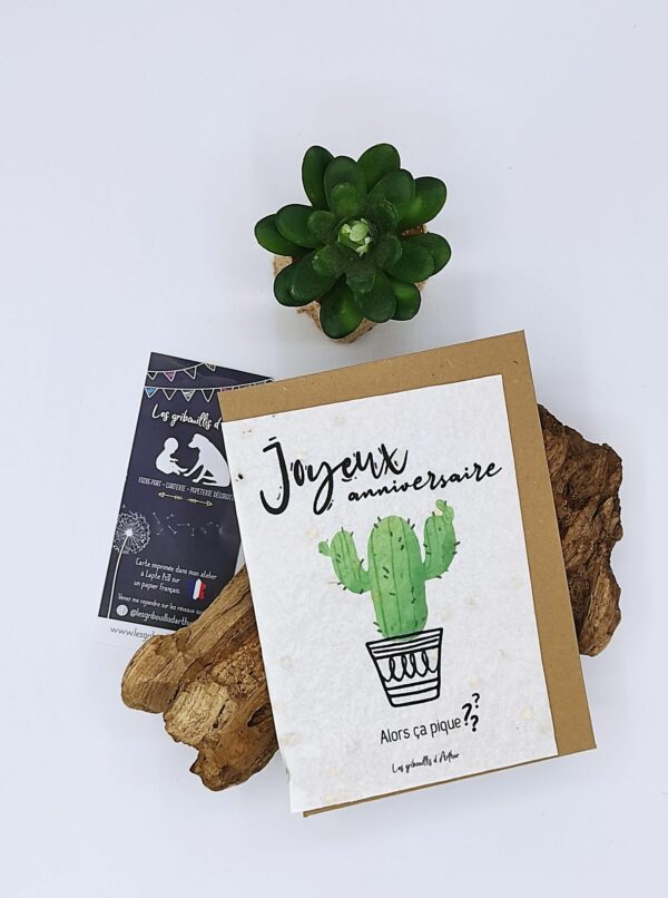 Parfois un an de plus « ça pique un peu »… mais pas si on est entouré de gentillesse et d’humour ! Ce modèle piquant de carte anniversaire à planter est une idée à croquer pour fêter un anniversaire ! Originale et drôle, elle fera pousser non pas les fleurs de l’âge mais de petits piments à déguster !