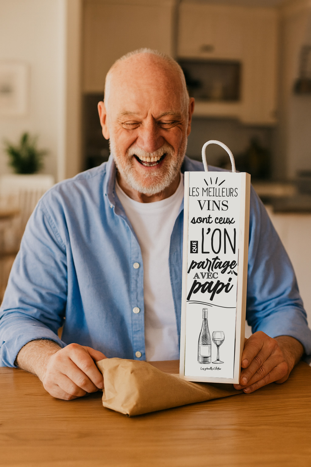 Offrez une bouteille de vin dans un joli coffret pour la fête de papys.